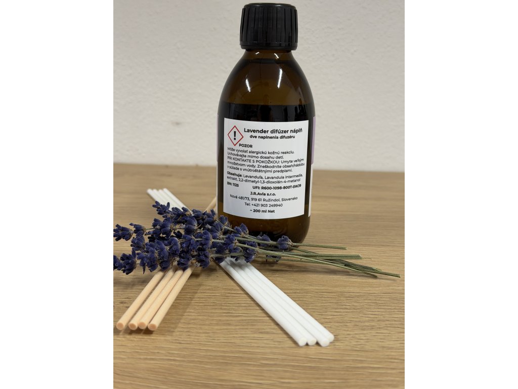 Náplň do levanduľového difuzéra s drevenými tyčinkami – prírodná vôňa z farmy J.R.Avia