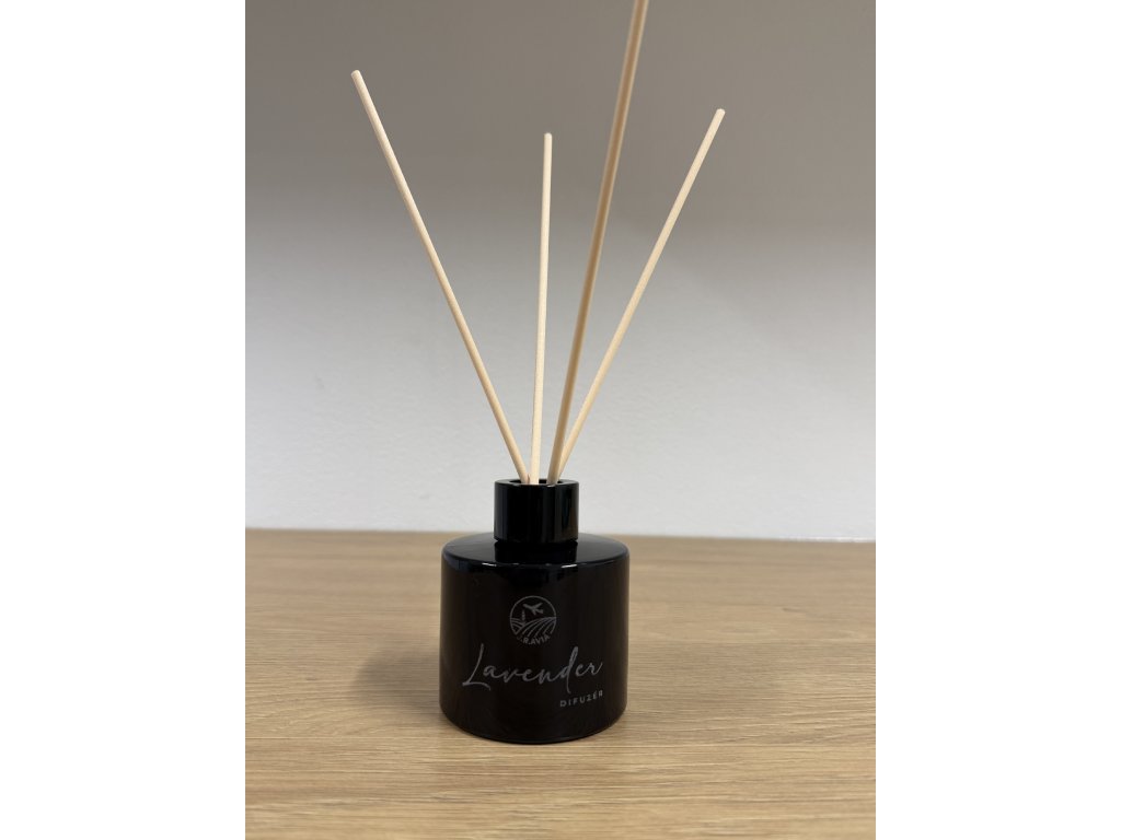 Difuzér obsahuje prírodný levanduľový esenciálny olej z odrody Lavandula × intermedia ‘Grosso’, pestovanej a destilovanej priamo na našej farme v Ružindole.