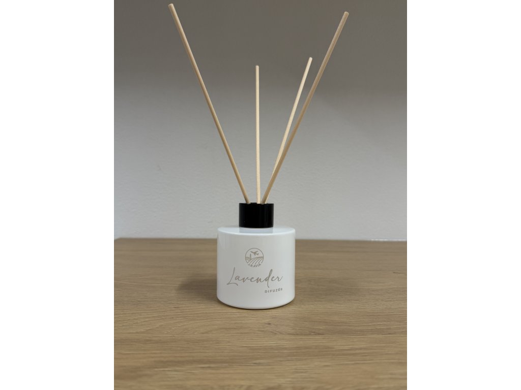Levanduľový difuzér s drevenými tyčinkami – prírodná vôňa z farmy J.R.Avia